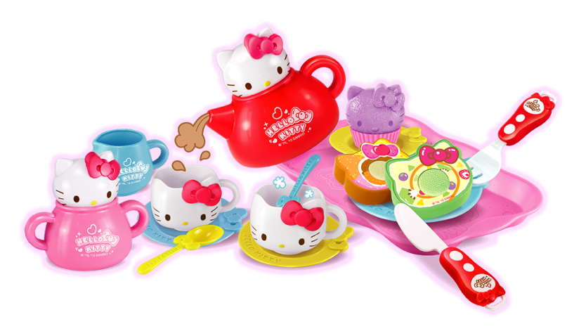 凯蒂猫茶点派对,一起和凯蒂猫度过一个温馨的下午茶时光吧。茶壶可以倒茶。可以打开糖壶,把糖放入茶杯,用小茶匙搅拌均匀。还可以把蛋糕卷切成两块和小伙伴分享美食。
