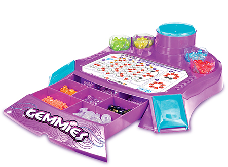 利用Gemmies创建一个3D世界。 只需按照提供的模板简单三步骤:夹入、连接、创造,就能创建Gemmies3D世界。 珠珠乐工作坊,配有透明彩珠容器、小抽屉,能更好的按颜色摆列整齐。 还有一盏七彩炫彩灯,使3D作品更闪闪发光。 (产品不附送电池,所需电池需另行购买)
