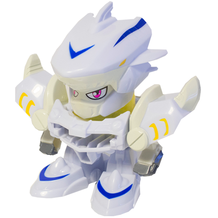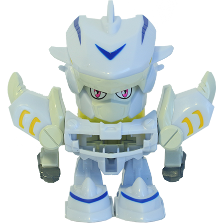 高度还原动画片中奇轮人的形象. 为初级形态,弹筒可装填7发零式战轮,可连发. 无需更换配件,只需简单变形步骤,即可变形至兽化形态,战斗力马上升级,射程更远,力度更大. 内含QR战轮,刮开并扫描二维码,马上在激战奇轮3手游中兑换金币或装备.